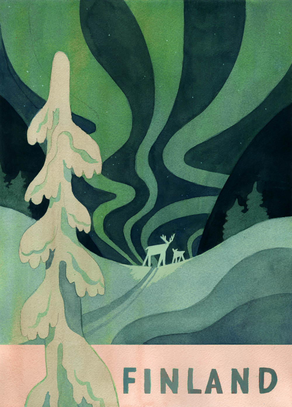 a slice of lapland's quiet serenity. painted with acrylic gouache on paper.
